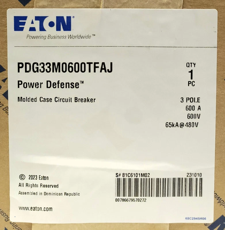 EATON PDG33M0600TFAJ 3 Pole 600 AMP Type PDG3 POWER DEFENSE Circuit Breaker